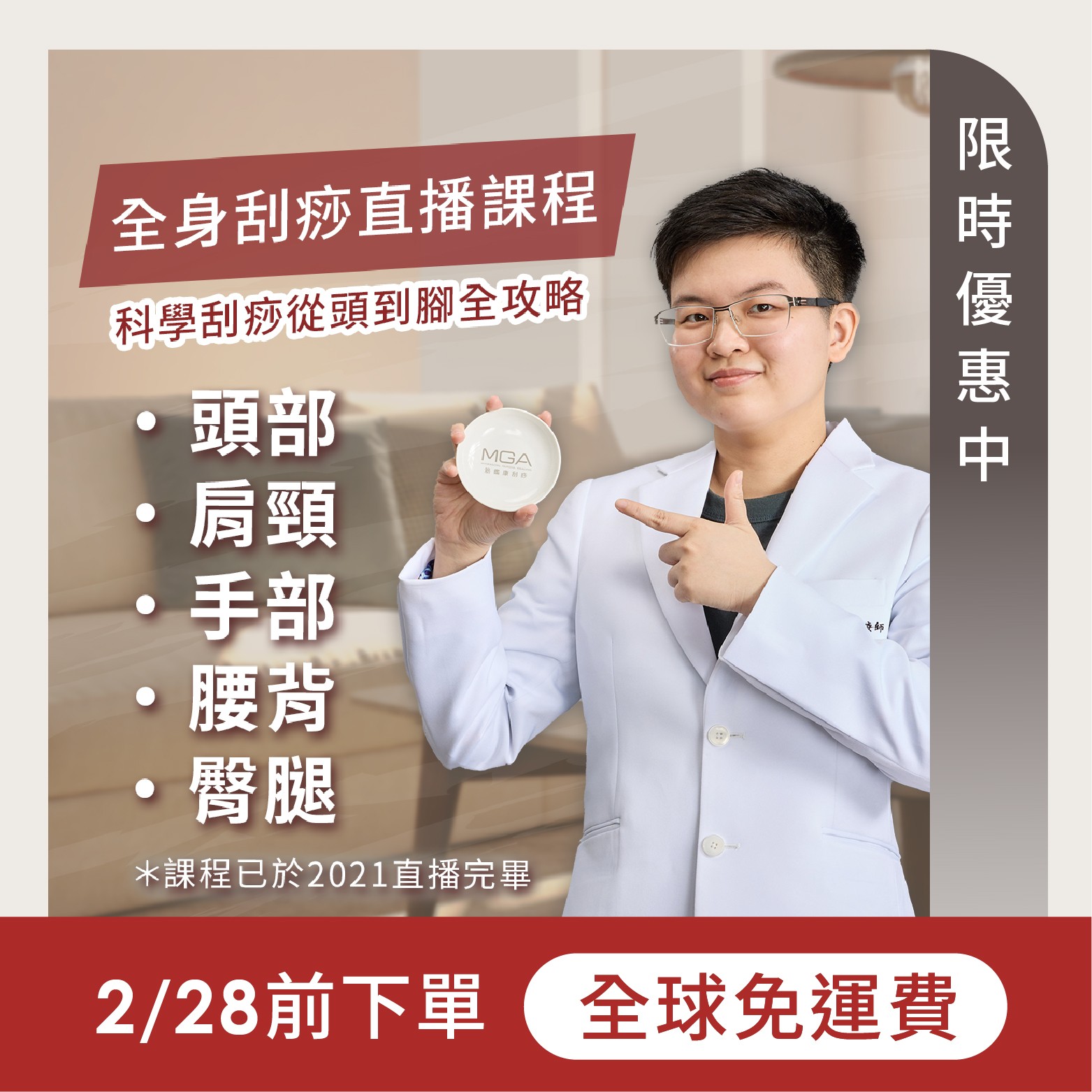 ☑全球免運費 ☑贈刮痧器具 ☑可重複觀看 ☑加入專屬社群